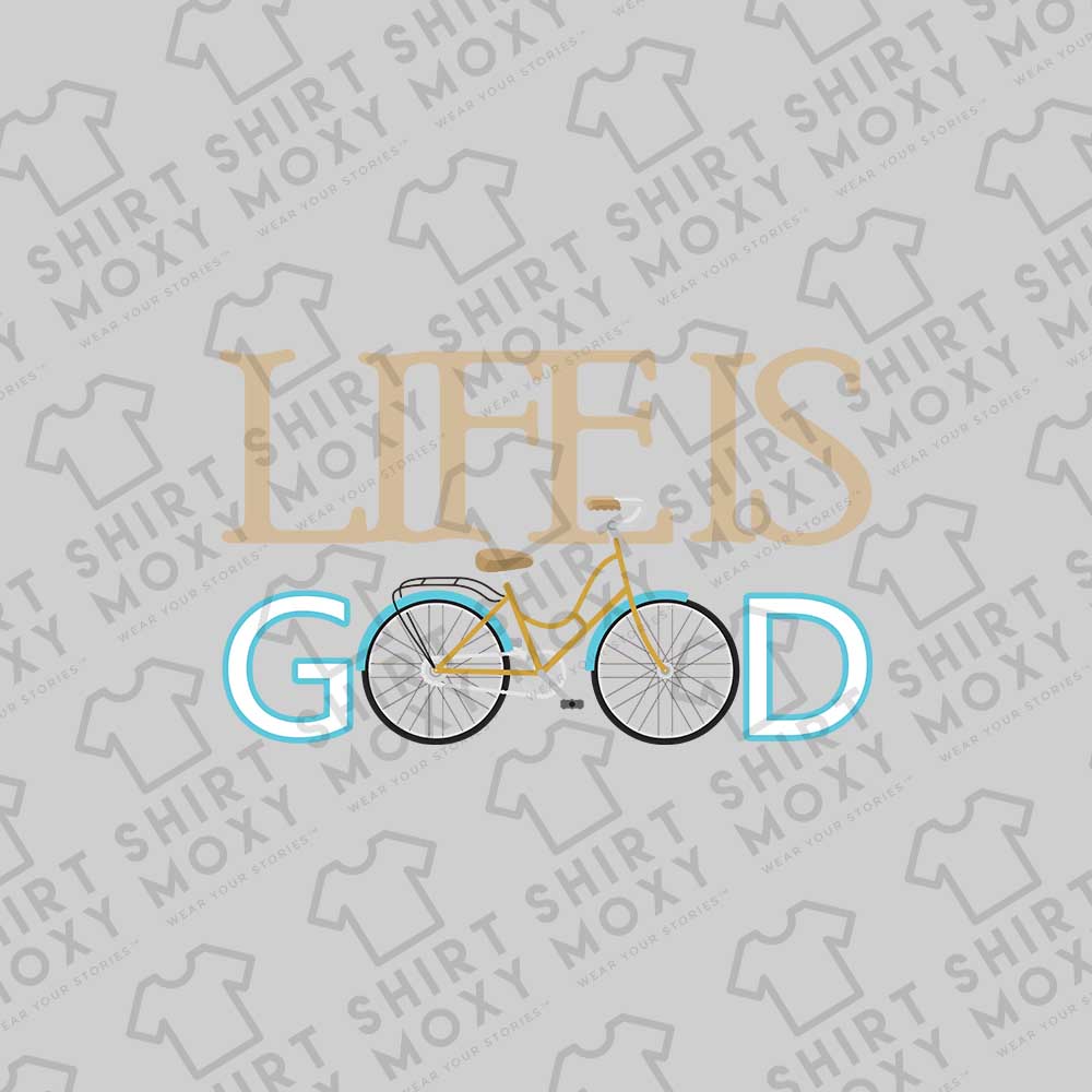 Life is good when you're cycling! This upbeat artwork celebrates the happiness that comes with every ride.