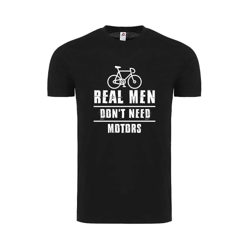 For the true cyclist, this T-shirt is a reminder that real men power their bikes with their legs, not motors. A bold statement for passionate riders.